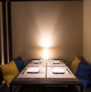上質な隠れ家的オシャレ空間は落ち着いてゆったり過ごせ 至福の時間をお過ごしいただけます◎2名様~は勿論、3名~5名様/6名~8名様/9名様~以上等人数も柔軟に受付しております。都会の喧騒から外れた落ち着きある個室席もご用意ございますので、幅広いシーンに応じてご利用いただけます◎